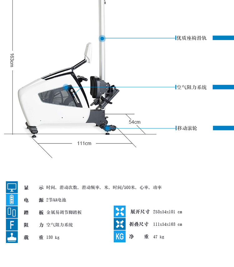喬山劃船機家用款OXFORD 5風控阻力可折疊高端健身器材 運動器材