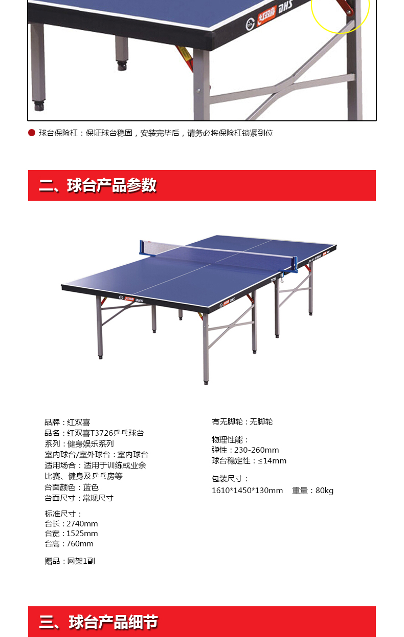 紅雙喜T3726乒乓球臺