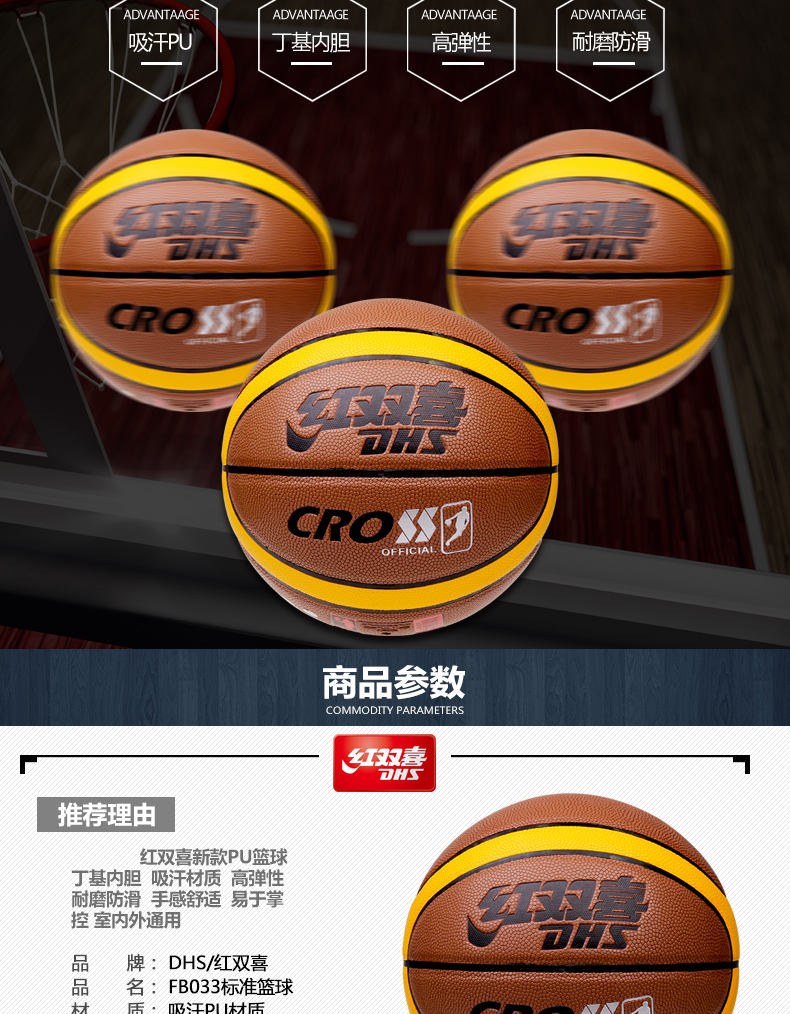 紅雙喜FB033籃球 吸汗12片PU籃球室內(nèi)外通用籃球