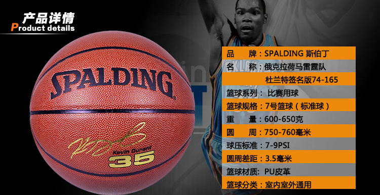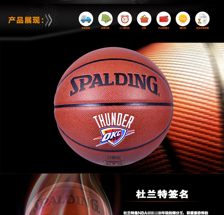斯伯丁籃球74-165 俄克拉荷馬雷霆隊 杜蘭特簽名版 PU材質 籃球