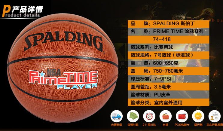 斯伯丁籃球74-418 NBA耐磨防滑7號PU室內(nèi)外耐磨訓(xùn)練比賽用球