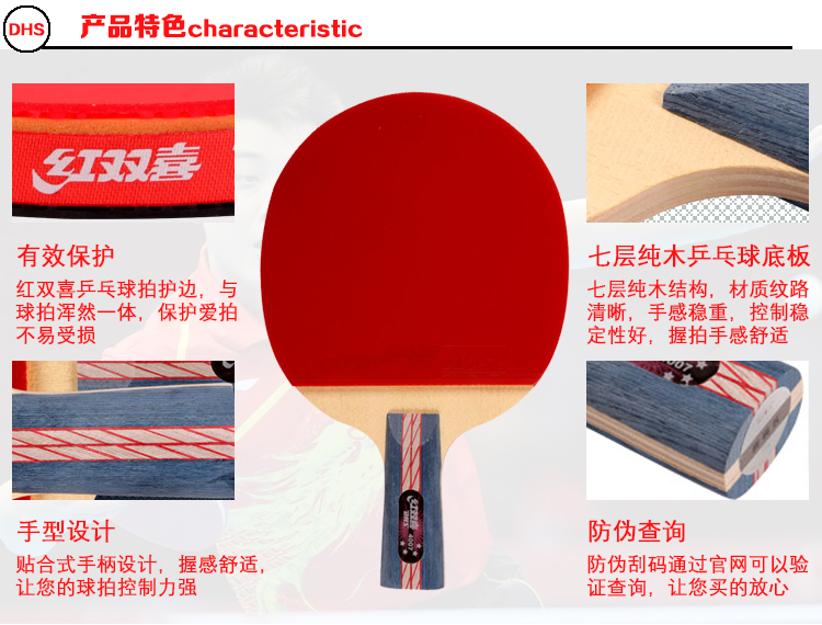 紅雙喜(DHS) R4002-R4003-R4006-R4007四星乒乓球拍