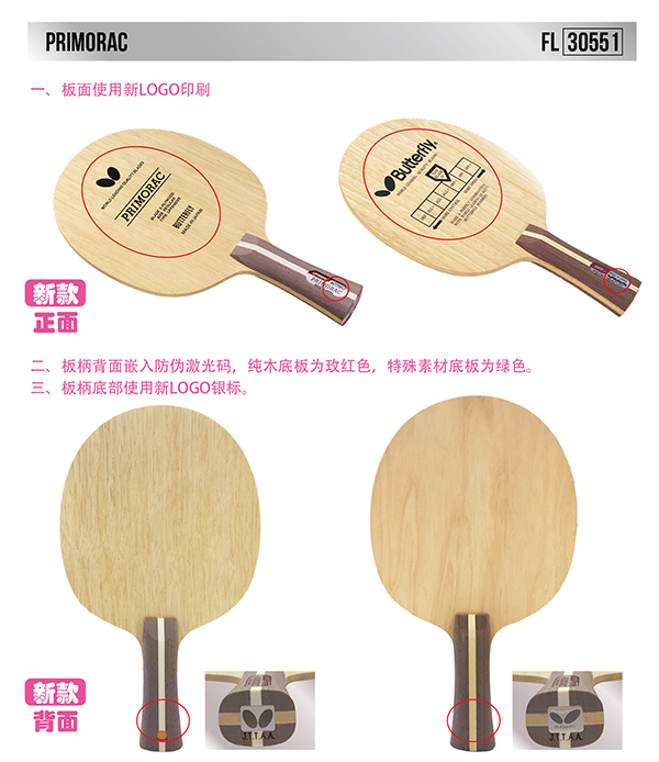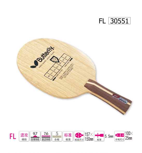 Butterfly蝴蝶30551 普木底板30551 普里莫拉茨純木底板乒乓球拍(Butterfly Primorac FL),暢銷(xiāo)經(jīng)典 控球利器 特別適合培養(yǎng)細(xì)膩手感