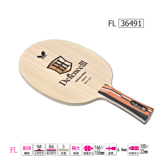 Butterfly蝴蝶36491 Defence Ⅲ-FL36491 注重進(jìn)攻威力的削球底板 橫拍 原木色