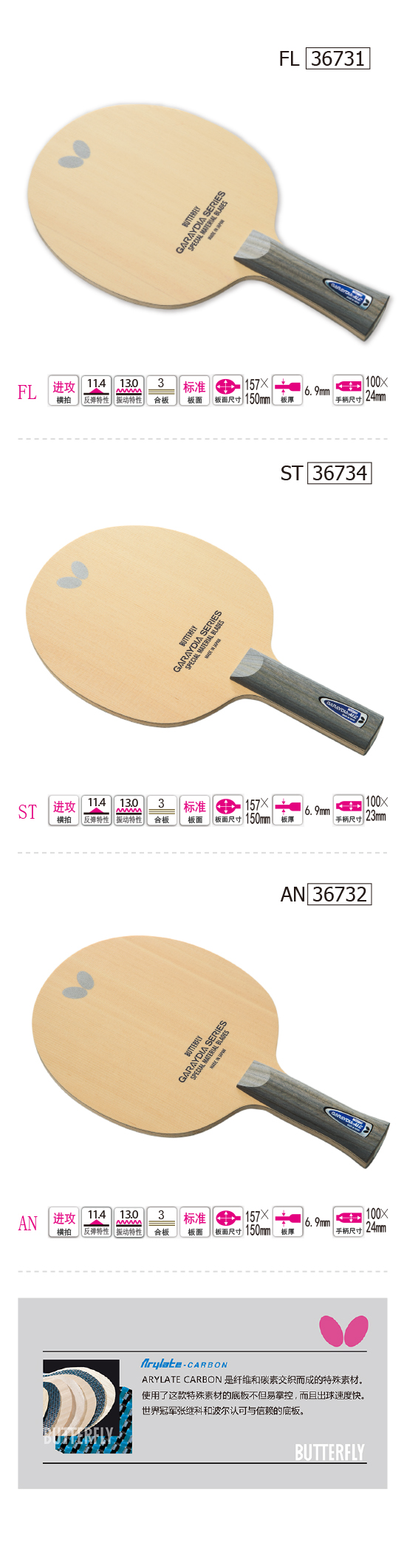 Butterfly蝴蝶36731 GARAYDIA-ALC36731 乒乓底板 進(jìn)攻型 纖維碳素 橫拍