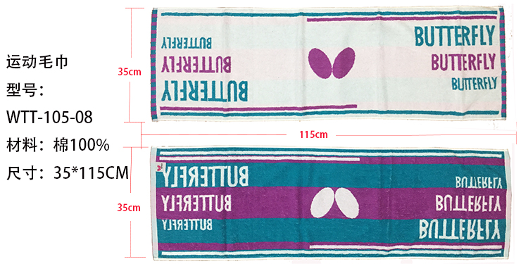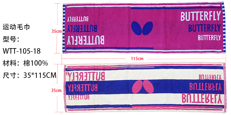 蝴蝶butterfly乒乓球運(yùn)動(dòng)毛巾 汗巾 WTT-105帶防偽