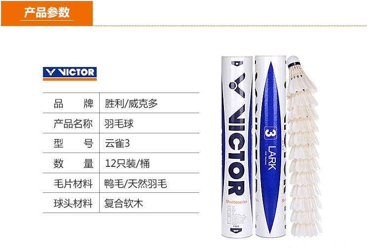 威克多VICTOR 勝利云雀3號(hào)LARK3羽毛球 訓(xùn)練用羽球 穩(wěn)定耐打 12只裝