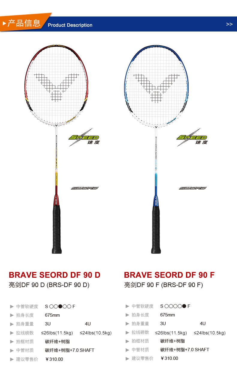 VICTOR威克多羽毛球拍單拍碳纖維業(yè)余初級速度亮劍系列BRS-DF90
