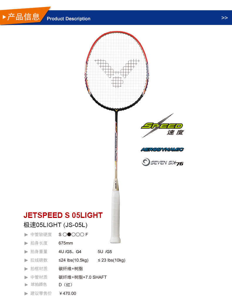 上一篇:VICTOR威克多羽毛球拍單拍碳纖維業(yè)余初中級高磅速度類JS-03H     |    下一篇: VICTOR威克多羽毛球拍單拍碳纖維業(yè)余中高級極速系列JS-08(NEW)