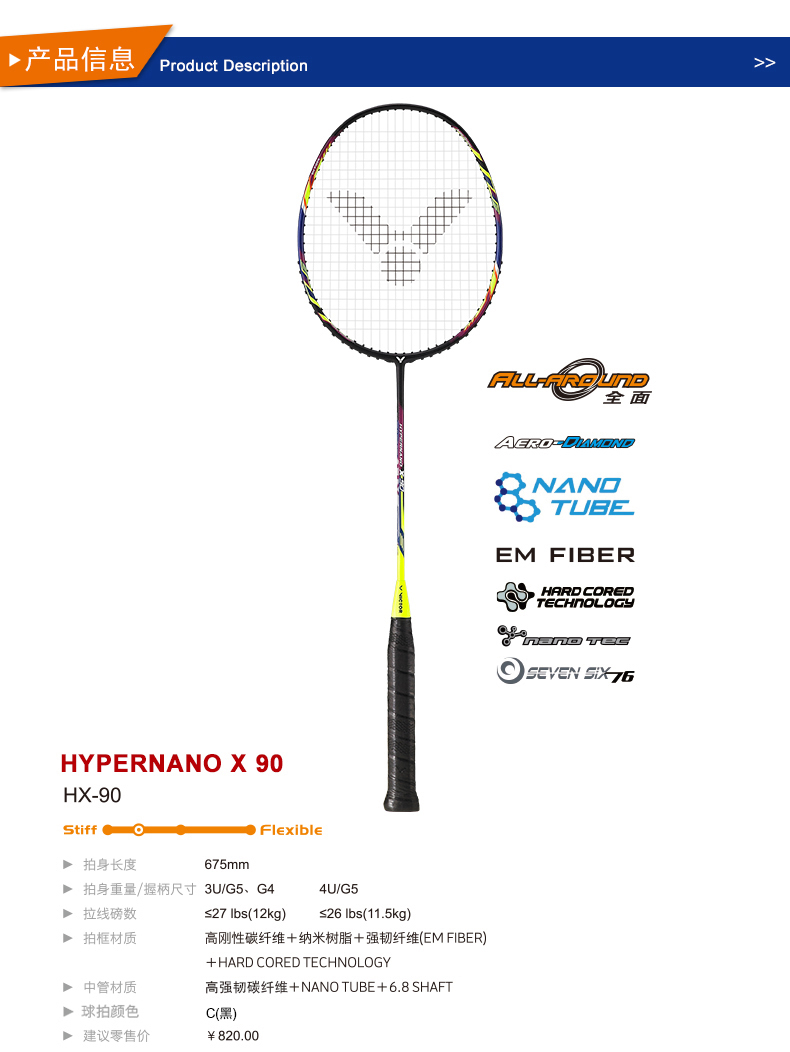 VICTOR威克多羽毛球拍碳纖維中高級(jí)精準(zhǔn)穩(wěn)定全面類HX-90