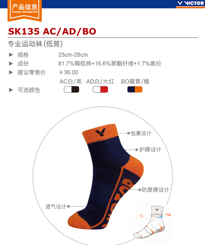 勝利VICTOR羽毛球襪 加厚毛巾底襪子運(yùn)動網(wǎng)球襪吸汗低筒襪SK135