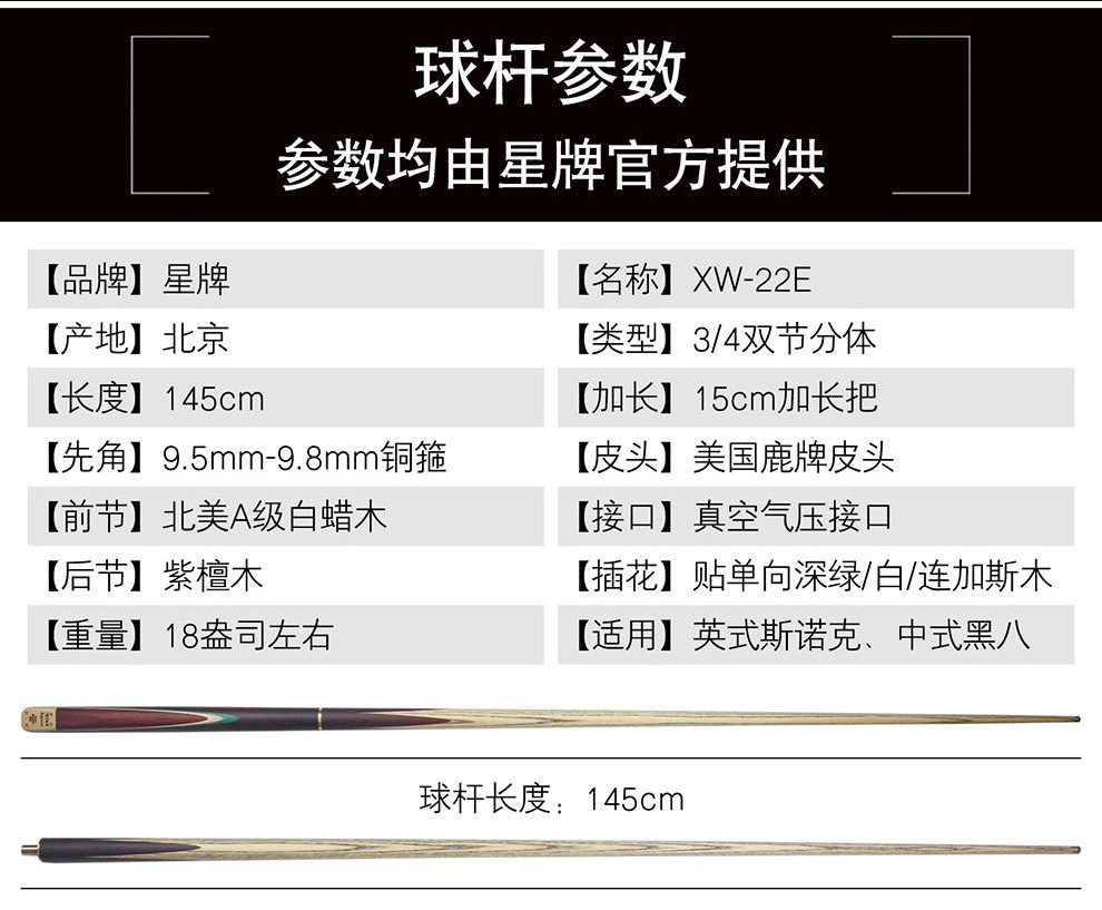 星牌 臺球桿 XW-22E小頭