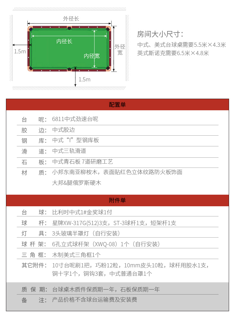 星牌 臺球桌 XW118-9A中式黑八球臺